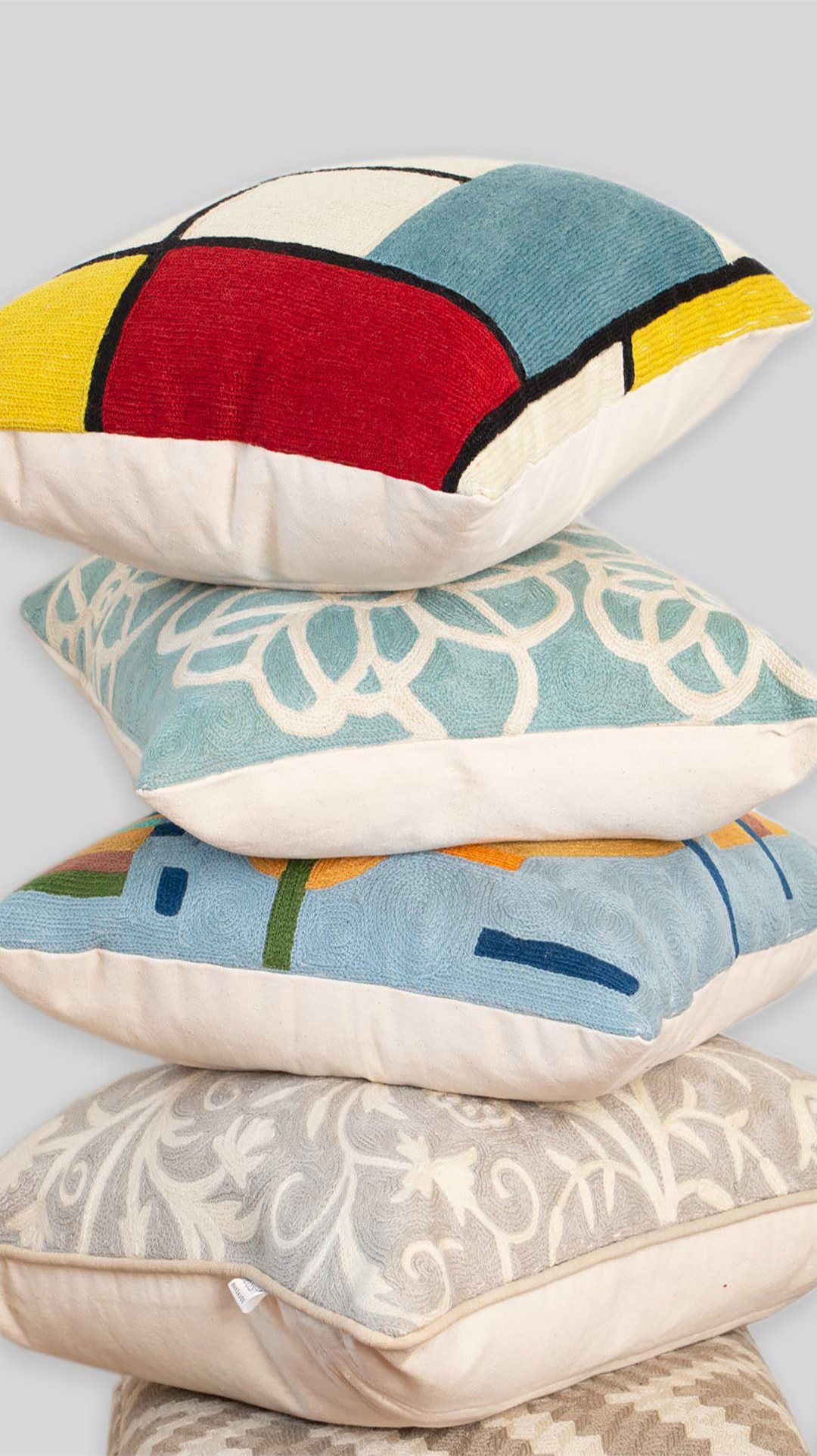 We understand the significance of quality, and that is why we only go for the best in terms of raw materials whenever we are making our luxurious cushion covers. To actualise this commitment, we use the finest 2-ply fine wool in making our hand-embroidered chainstitch wool cushion covers. There is a lot more to these crewel cushion covers than just their highly sophisticated embroidery as well as timeless handicrafts. Our Picasso cushion covers, cat cushion covers, Kendasky cushion covers, and abstract cushion covers are fabricated by our craftsmen, who pay much attention to every detail so that every pillow meets your quality and beauty standards.