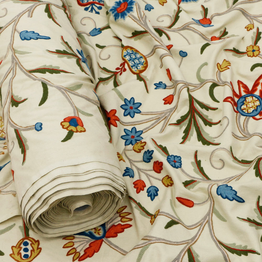 Drass Hand Embroidered Cotton Crewel Fabric